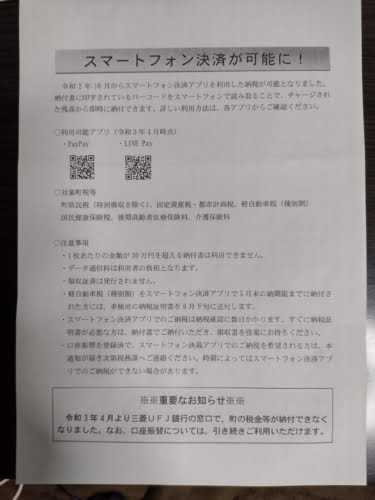 手元に届いた納付書と合わせて、スマホ決済についてのお知らせが同封されていました。